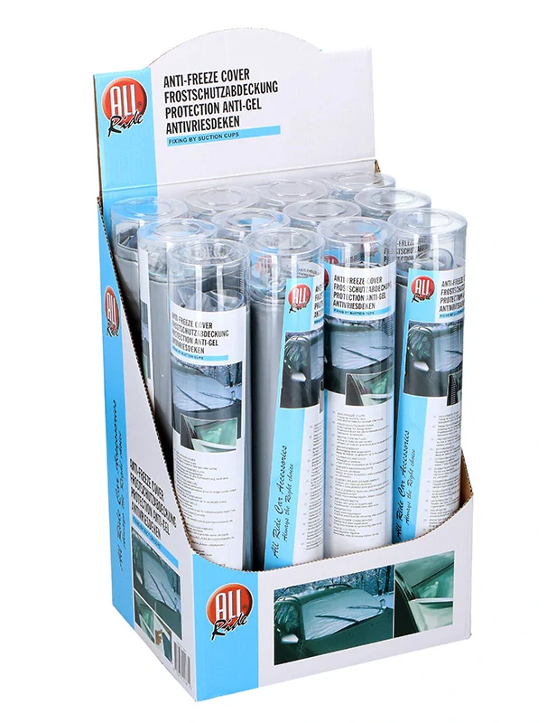 ALLRIDE clona na čelní sklo proti sněhu a námraze. Součástí balení jsou přísavky, pomocí nichž se clona po přetažení přes čelní sklo uchytí uvnitř vozu. Po sejmutí se clona může uchovávat v tubě, v níž se dodává.