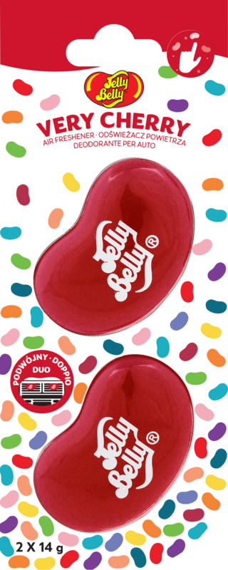Osvěžovač vzduchu Jelly Belly Duo Vent Clip-On - Very Cherry - Třešeň je příjemná, sladká a ovocná vůně do vašeho auta, které provoní po dobu 30 dnů. Vůně Very Cherry má intenzivní ovocnou vůni, která může být popisována jako lahodně sladká s jemným nádechem kyselosti. Vůně dokonale překypuje nepříjemný zápach a dopřeje vašemu autu dlouhotrvající příjemnou vůni.