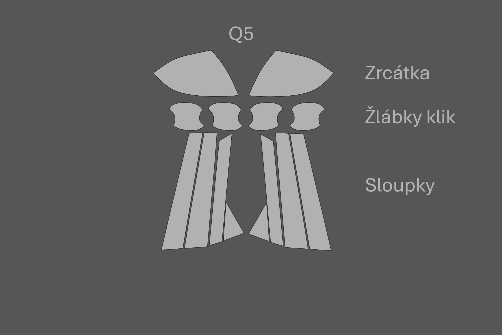 - JEM PPF předřezaná fólie zrcátka, žlábky klik a sloupky Audi Q5 Černý lesk