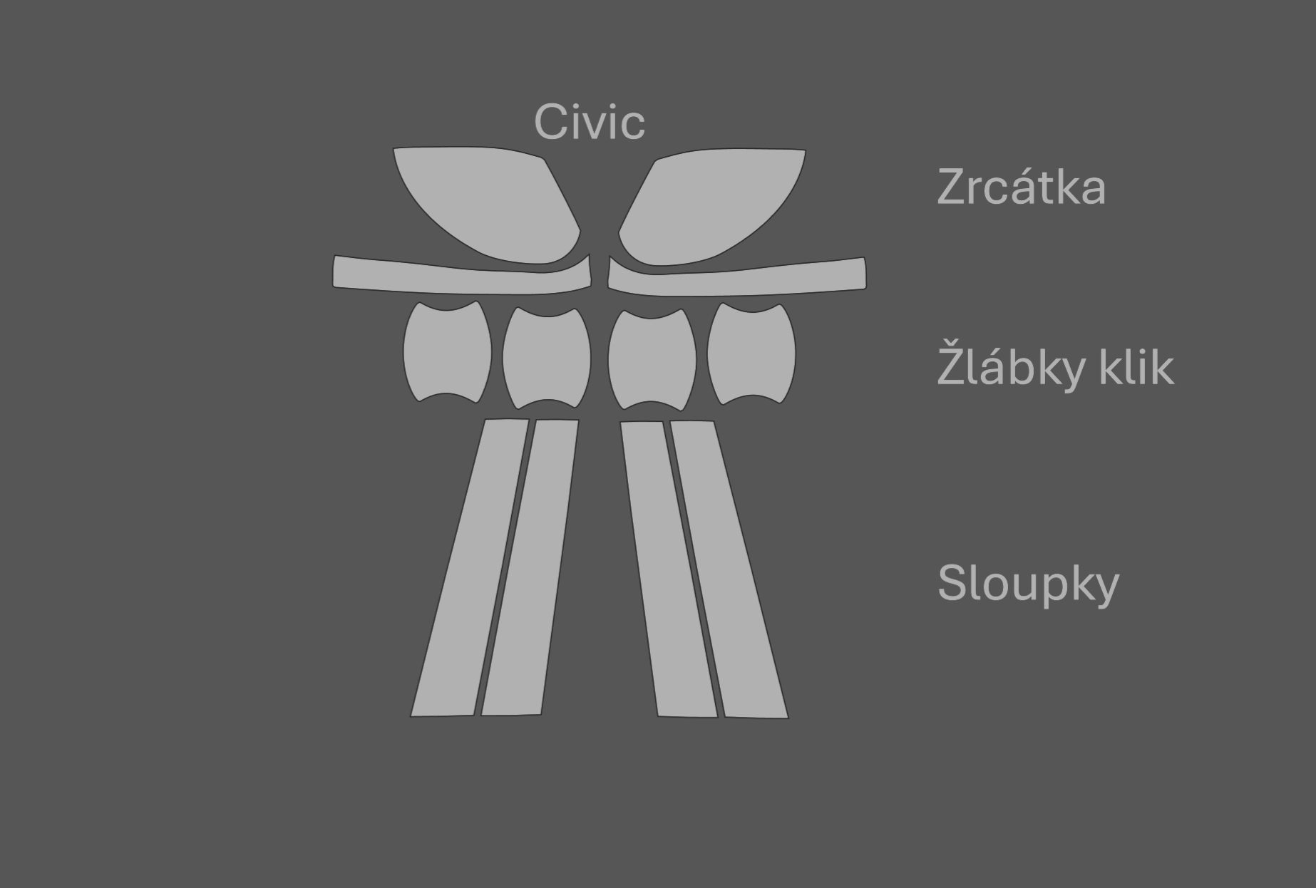 - JEM PPF předřezaná fólie zrcátka, žlábky klik a sloupky Honda Civic Černý lesk