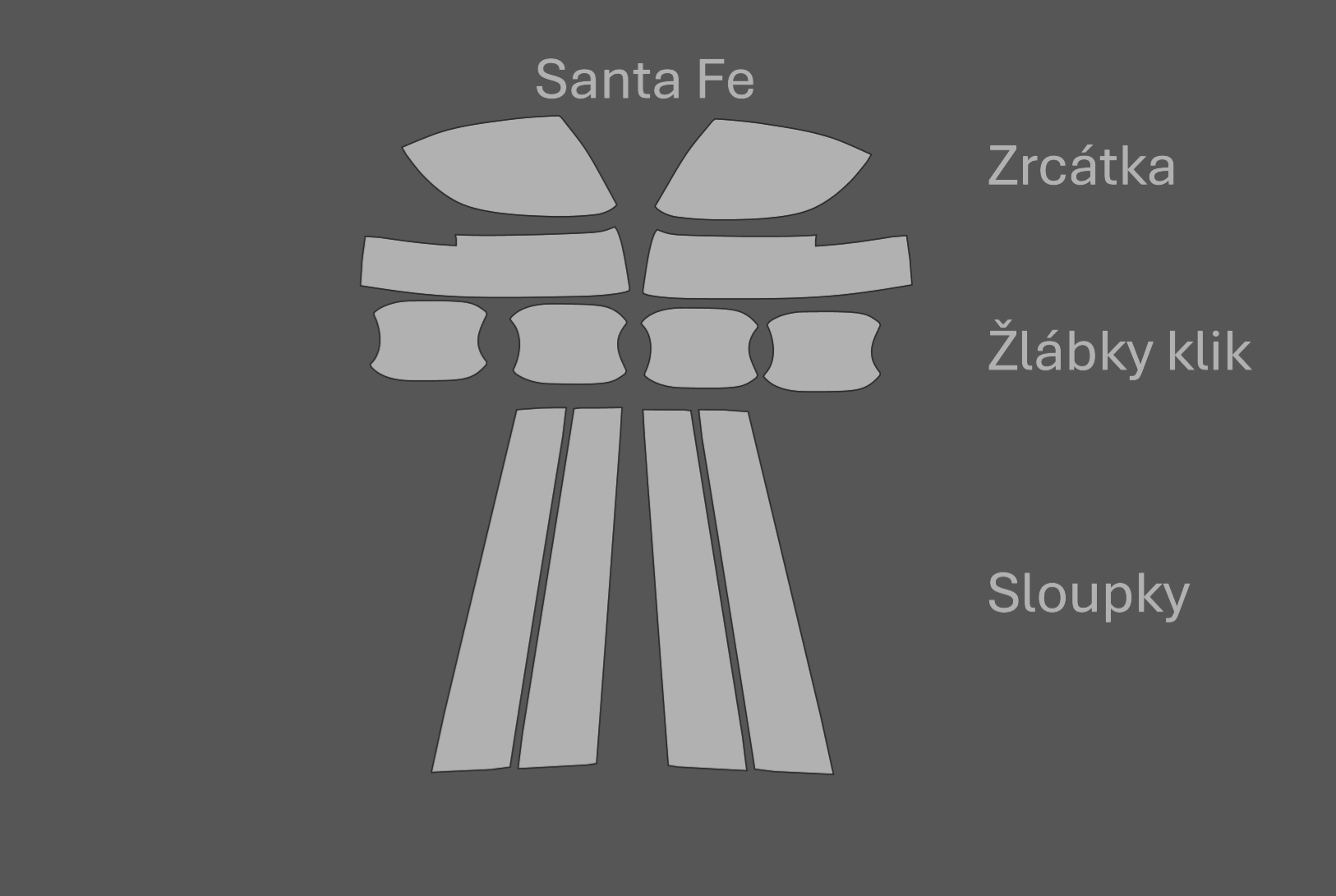JEM PPF předřezaná fólie zrcátka, žlábky klik a sloupky Hyundai Santa Fe Carbon