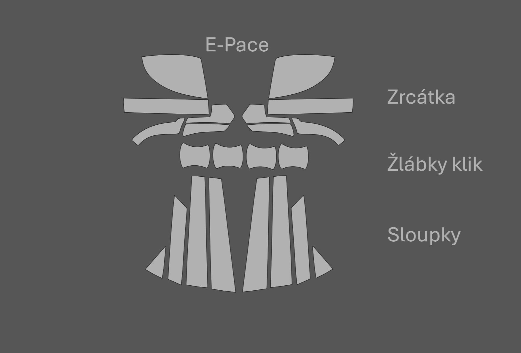 - JEM PPF předřezaná fólie zrcátka, žlábky klik a sloupky Jaguar E-Pace
