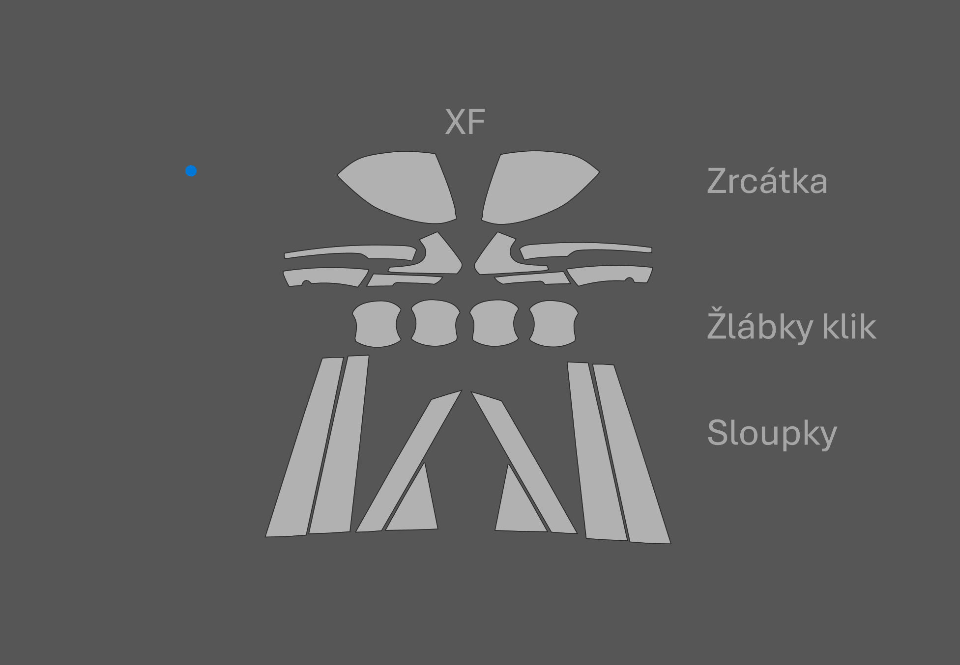 - JEM PPF předřezaná fólie zrcátka, žlábky klik a sloupky Jaguar XF Černý lesk