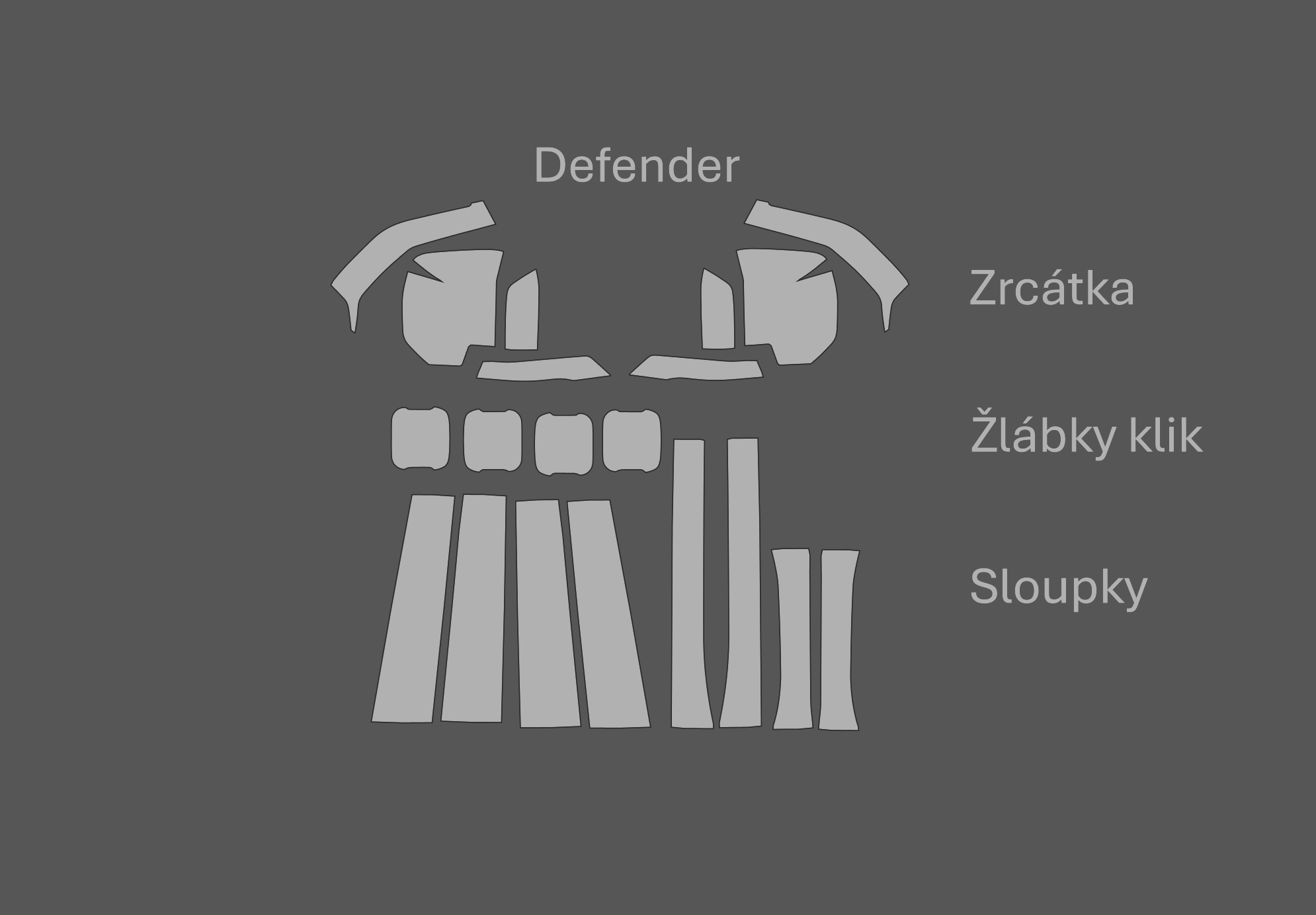 - JEM PPF předřezaná fólie zrcátka, žlábky klik a sloupky Land Rover Defender Černý lesk