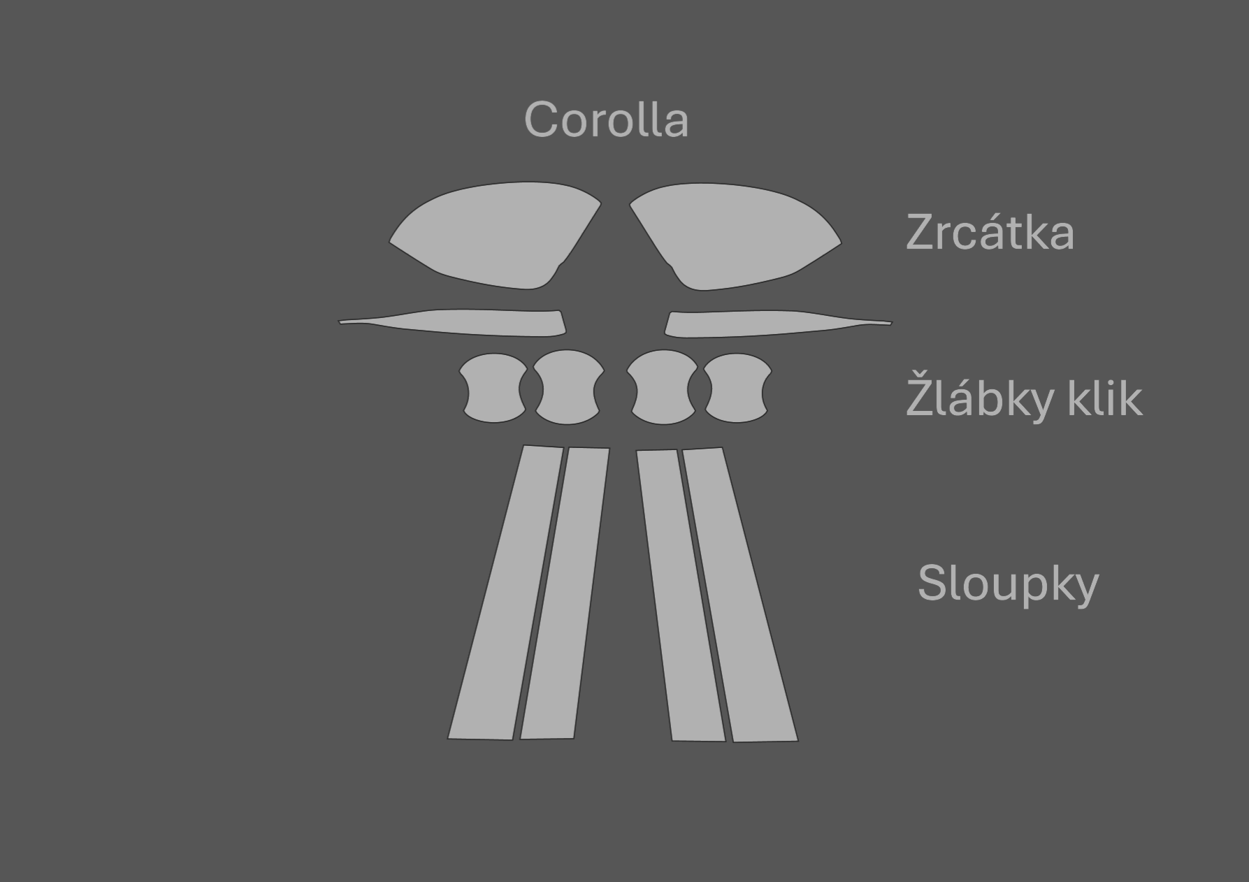 - JEM PPF předřezaná fólie zrcátka, žlábky klik a sloupky Toyota Corolla