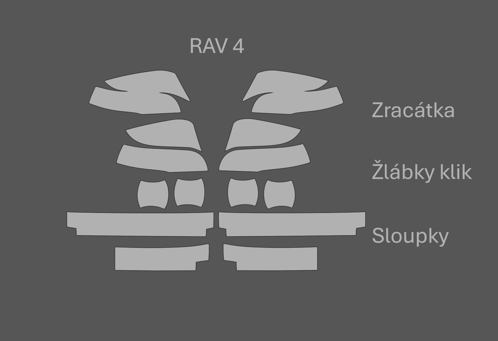 - JEM PPF předřezaná fólie zrcátka, žlábky klik a sloupky Toyota RAV 4