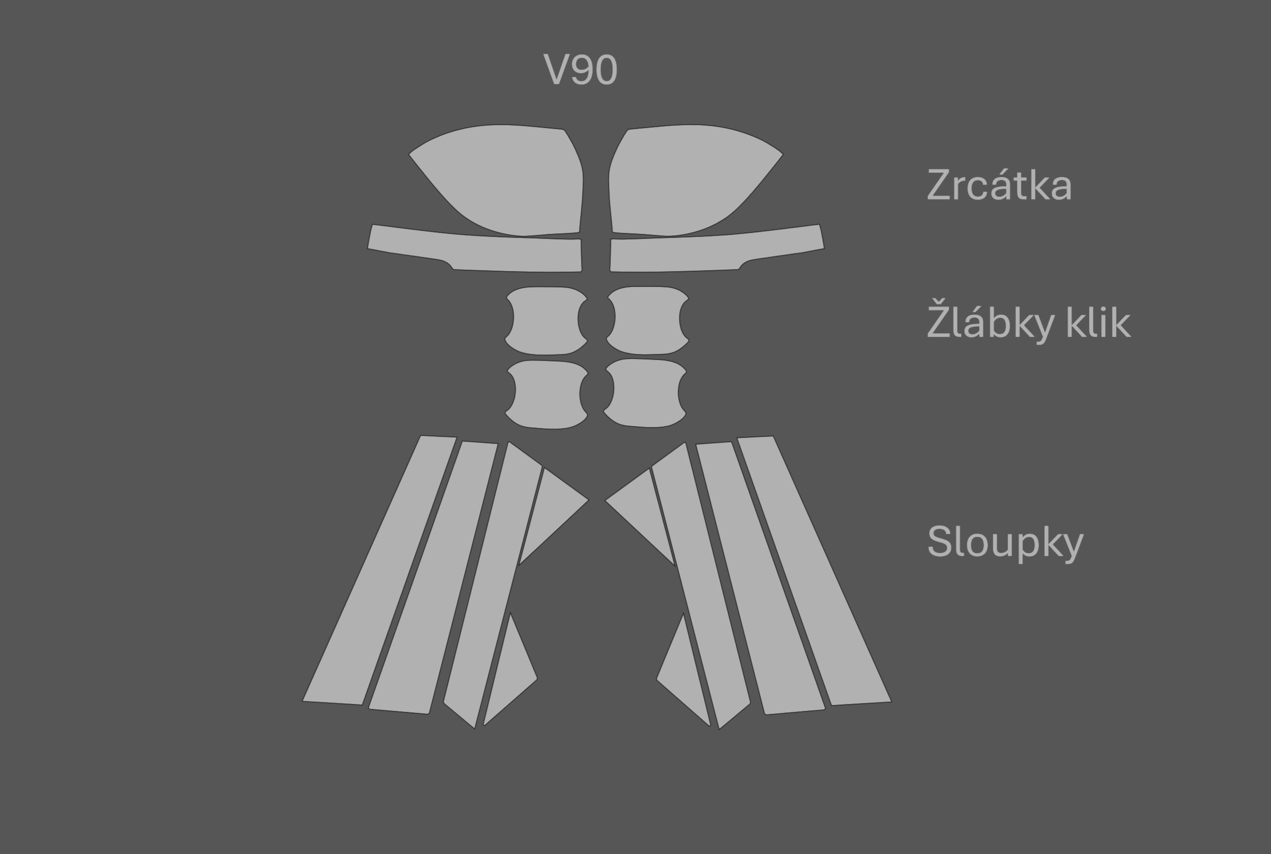 - JEM PPF předřezaná fólie zrcátka, žlábky klik a sloupky Volvo V90 Černý lesk