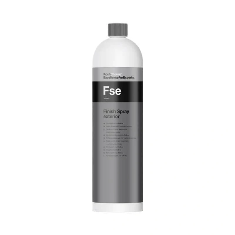 Koch Chemie Finish Spray exteriér (FSE) je univerzální produkt pro expresní údržbu povrchů, jako jsou lak, sklo a plasty. Jeho inovativní složení odstraňuje vodní kámen bez zanechání zbytků. Je to produkt 3 v 1 (čistí, ošetřuje a konzervuje). Dodává čištěným povrchům prakticky nekonečnou hloubku, úžasný lesk a hladkost. To vše bez jakýchkoli šmouh, což svědčí o snadném použití produktu. Produkt se téměř okamžitě vstřebává, snadno se nanáší a chrání čištěné povrchy před opětovnou kontaminací.