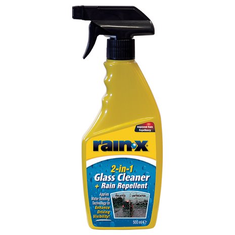 Rain-X Glass Cleaner+Rain Repellent čistí a zárověń vytváří neviditelný povlak, který odpuzuje kapky deště, plískanice a sníh, čímž zlepšuje viditelnost a bezpečnost při jízdě. Dešťové kapky v kontaktu s extrémně hladkým povlakem jsou odfouknuty silou větru generovaného během jízdy. Na bočních a zadních oknech a zrcátkách kluzká hydrofobní vrstva způsobuje rychlejší stékání vody a kapiček, než aby stékala po celém povrchu. Pomáhá také udržovat okna čistá a urychluje odstraňování ledu, soli, bláta a zbytků hmyzu. Je ideální pro čelní skla, boční okna, zadní okna a skla světlometů. Velmi účinný produkt a velmi snadné použití. Jedná se o jeden z nejoblíbenějších produktů tohoto typu na trhu.