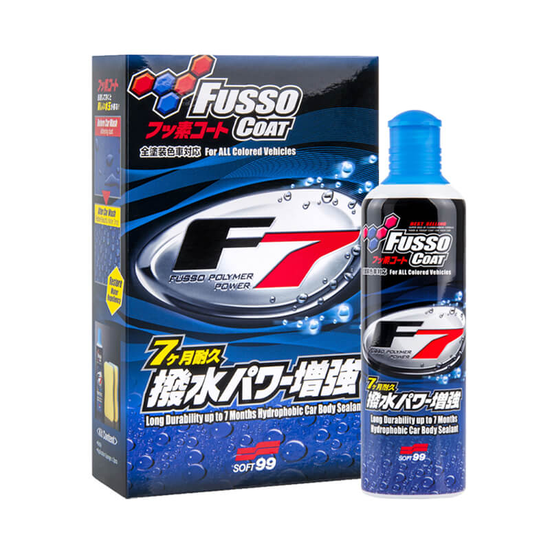 Tekutý vosk, který potěší jak méně zkušené lidi, kteří chtějí oživit lak svého vozu, tak i profesionály, kteří potřebují rychle vylepšit vizuální stránku laku. Přípravek není náročný na použití, ale je vysoce účinný. Fusso Coat F7 ochrání karoserii vozu proti různým typům negativních faktorů, kterým je vůz téměř každý den vystaven, např. kyselé deště, UV záření. Velkou výhodou vosku je skutečnost, že jej lze aplikovat na jakoukoliv barvu laku, včetně matných laků a fólií. Hydrofobní efekt po aplikaci bude patrný až 7 měsíců po aplikaci vosku. Sada vosků obsahuje dva pěnové aplikátory, které umožňují aplikaci přípravku i na místa s omezeným přístupem.